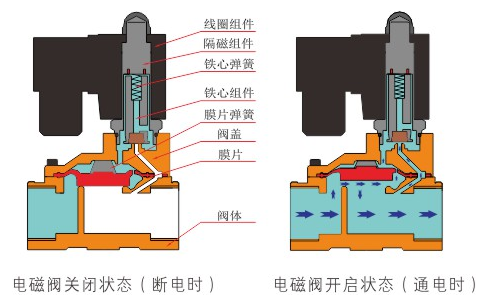 原理:开云官方端网站登录入口-开云online(中国)直动式电磁阀分常闭型和常开型两种。常闭型电磁阀断电时为关闭状态,线圈通电时产生电磁力,动铁芯跟静铁芯吸合,电磁阀阀口打开,介质(流体)通过;当电磁阀线圈断电时电磁阀消失,在弹簧的作用力下,电磁阀动铁芯复位,阀口关闭,介质(流体)不同,电磁阀呈关闭状态。常开型与之相反。